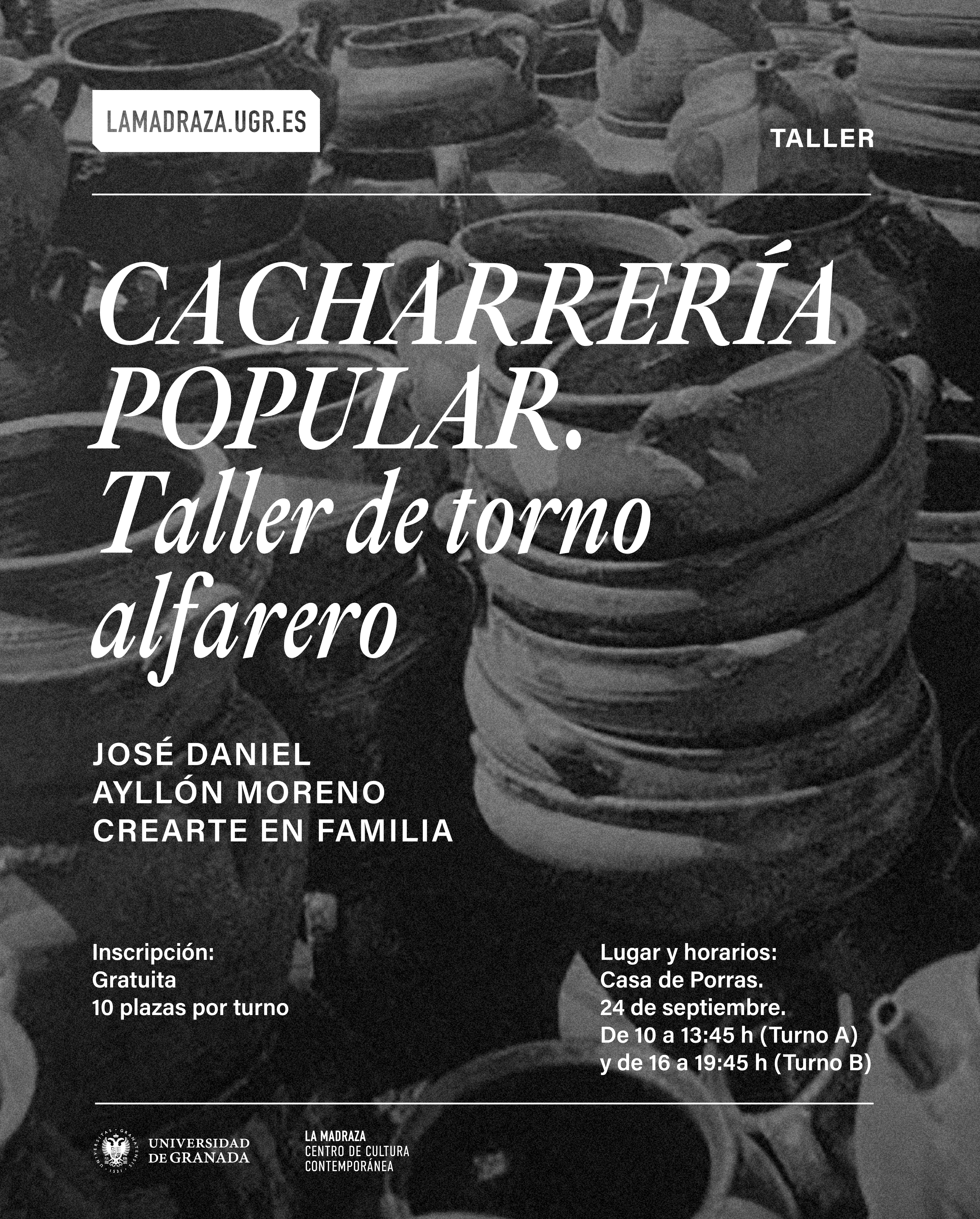 Los participantes en esta actividad se iniciarán en las técnicas del torno alfarero. Se guiará en la producción de cacharrerías cerámicas, objetos cotidianos utilizados popularmente en el menaje de cocina, que podrán ser interpretados creativamente durante el taller.