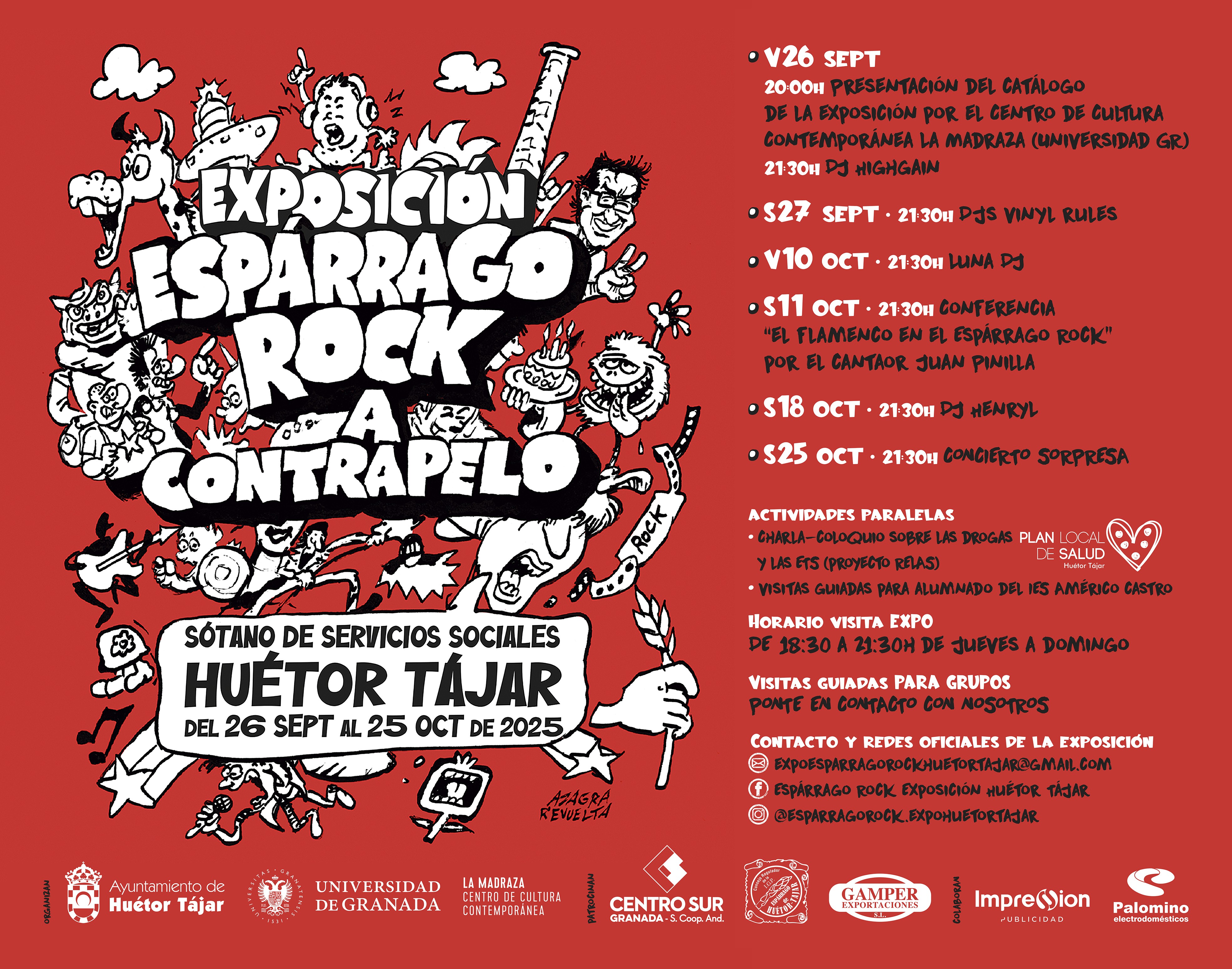 La exposición que La Madraza. Centro de Cultura Contemporánea, en colaboración con el Ayuntamiento de Huétor Tájar, ha ideado para volver sobre la rica y compleja experiencia cultural que fue el festival internacional Espárrago Rock. La muestra, comisariada por Antonio Collados, Marisa Mancilla y Marina Hervás, plantea un recorrido por la historia y el impacto de uno de los festivales más emblemáticos de España, reivindicando su papel como catalizador cultural, económico y social, así como su capacidad para proyectar a Granada y Andalucía en el panorama internacional, convirtiendo la ciudad en una auténtica capital cultural del rock.